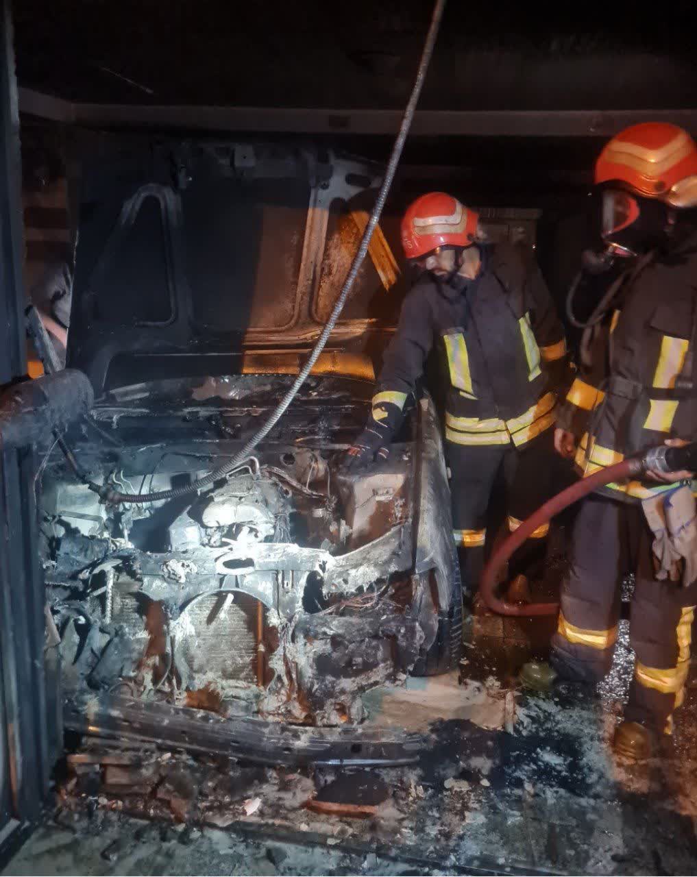 با حضور امدادگران آتش نشانی کرمانشاه در محل حادثه آتش سوزی خودرو مهار و از سرایت حریق به ساختمان و همچنین دیگر خودروهای درون پارکینگ جلوگیری شد.